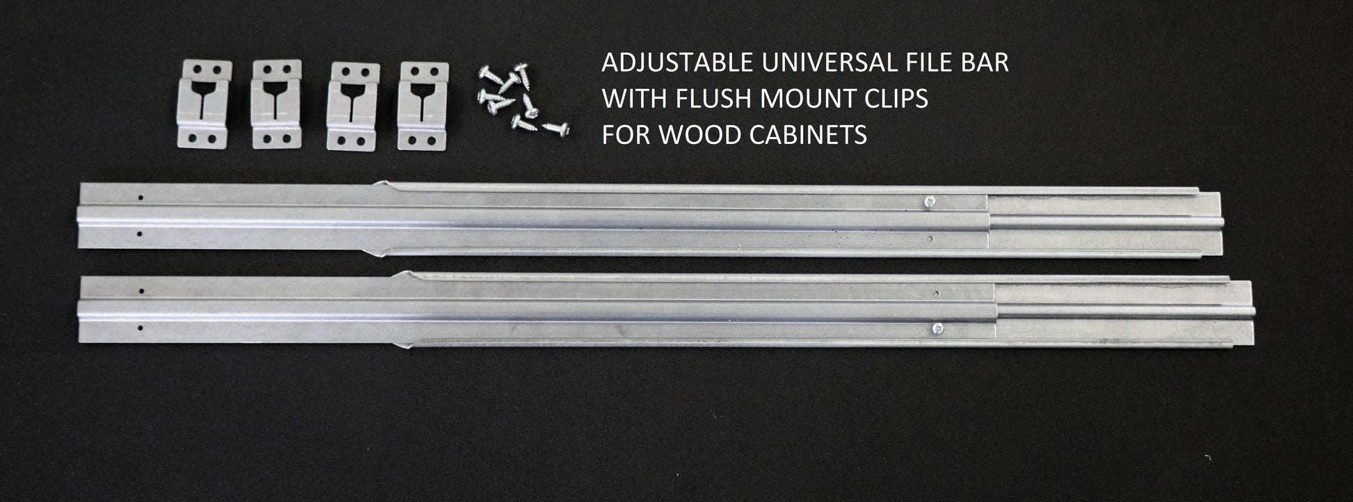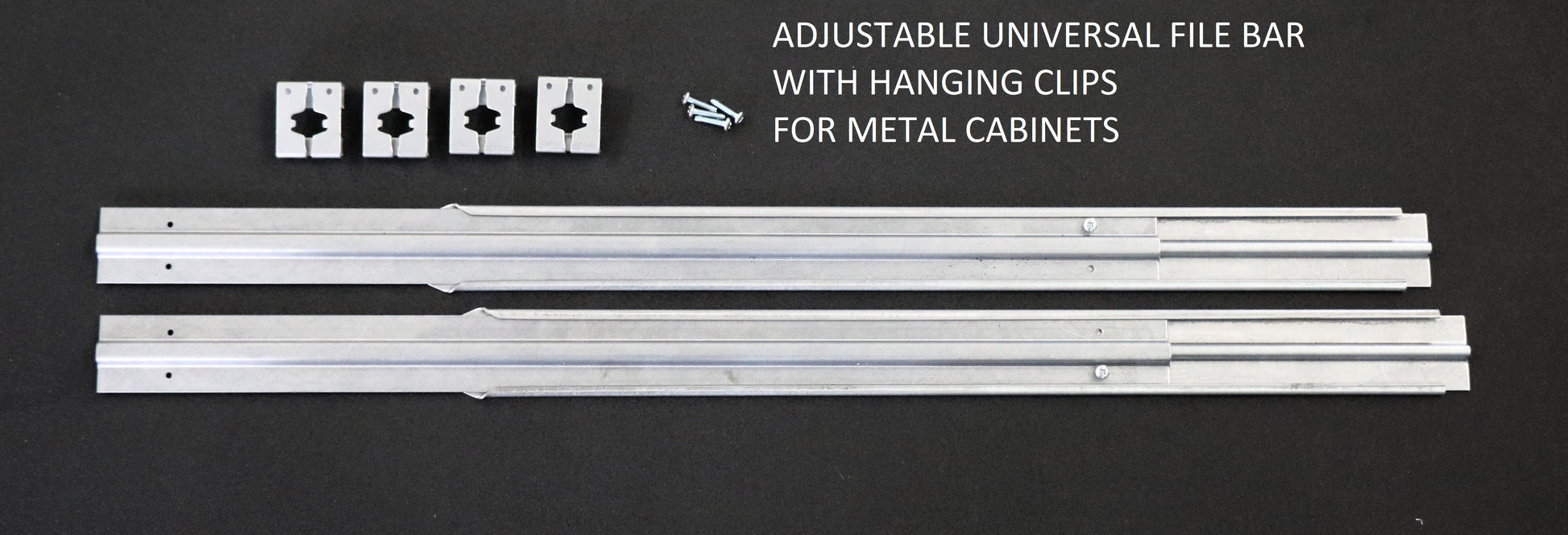 - These bars are designed to function with our (2) styles of universal file clips UFC547 for Metal cabinets and UFC966 for Wood Cabinets. Together they allow you to create your own "custom length" lateral cabinet file bars.